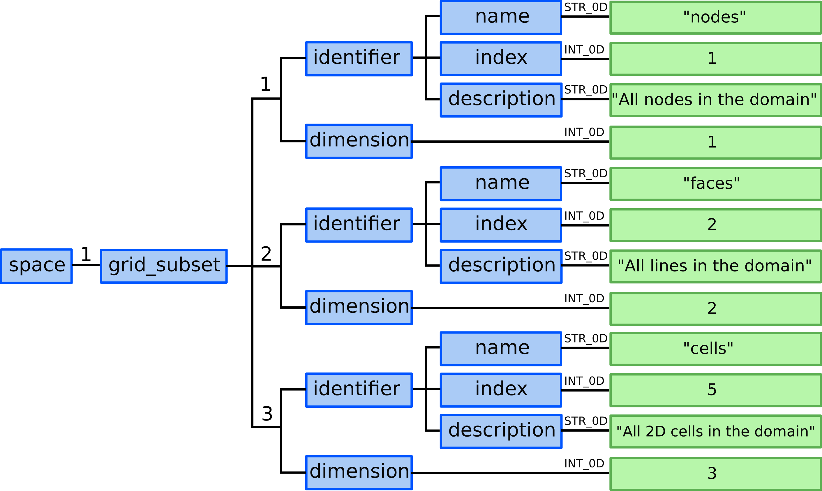 grid_ggd(1).grid_subset(1).dimension = 1grid_ggd(1).grid_subset(1).identifier.name = "nodes"grid_ggd(1).grid_subset(1).identifier.index = 1grid_ggd(1).grid_subset(1).identifier.description = "All nodes in the domain"