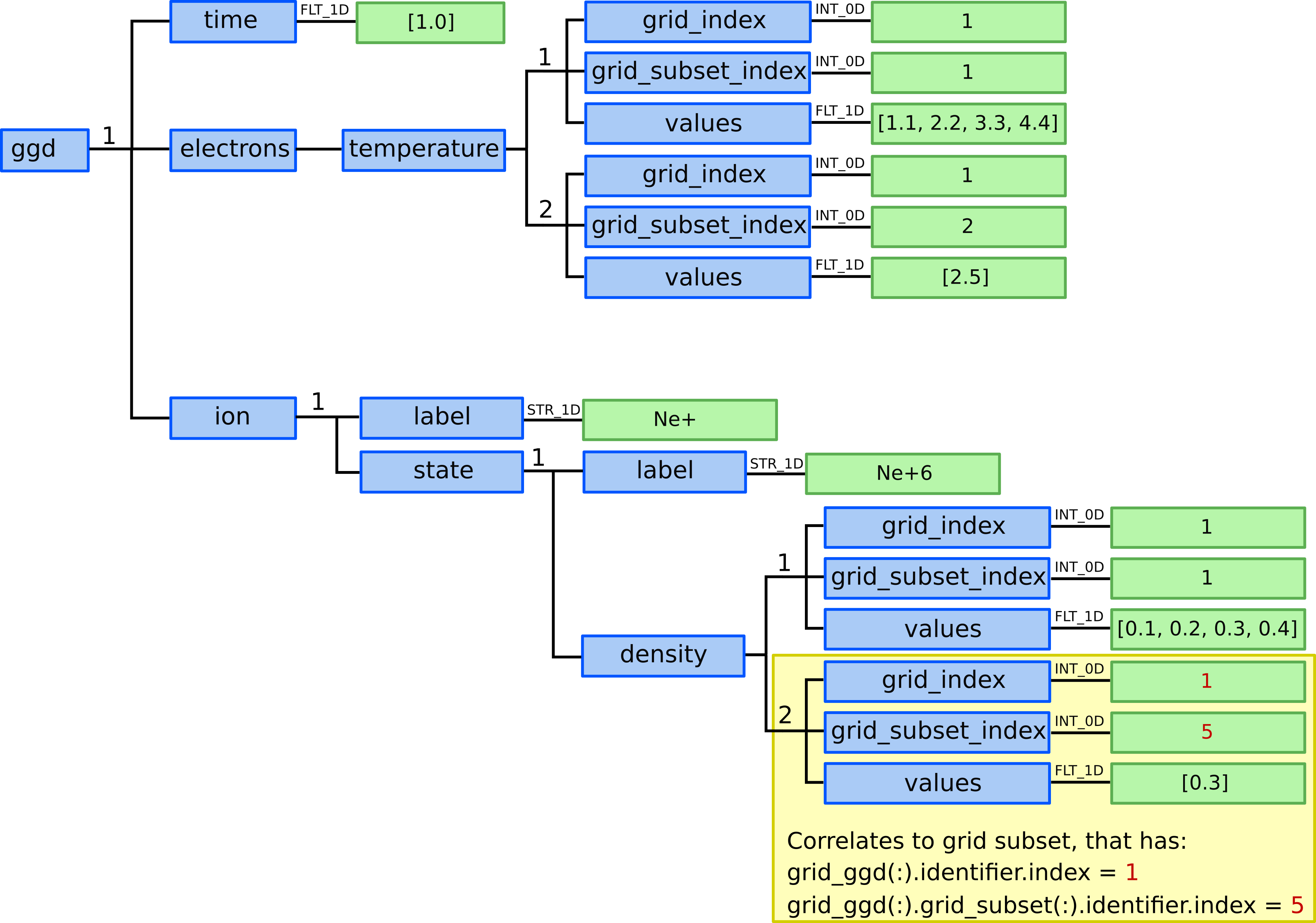 ggd(1).ion(1).state(1).density(2).grid_index= 1ggd(1).ion(1).state(1).density(2).grid_subset_index= 2ggd(1).ion(1).state(1).density(2).values= e.g. [0.3] (one value per cell)