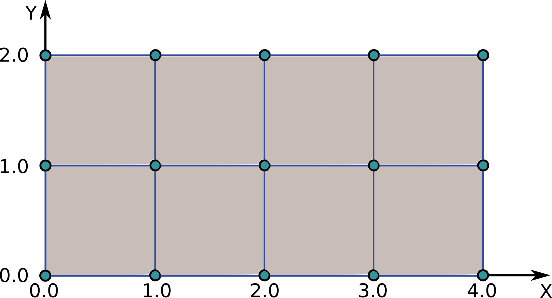 Grid consisting of consisting of 5 points in X direction, and 3 points in Y direction.¶
