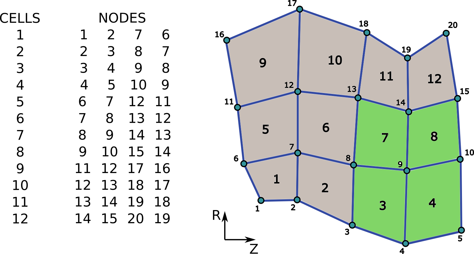 “0”. Each node has \(R, Z\) coordinate in .../geometry with